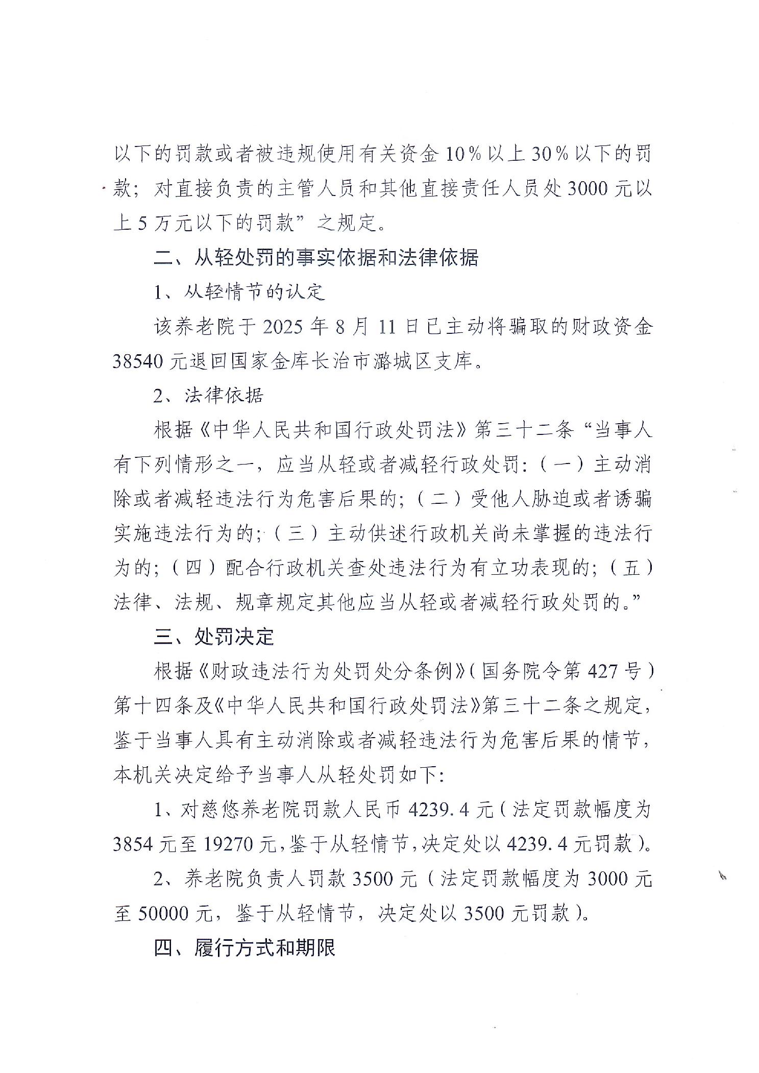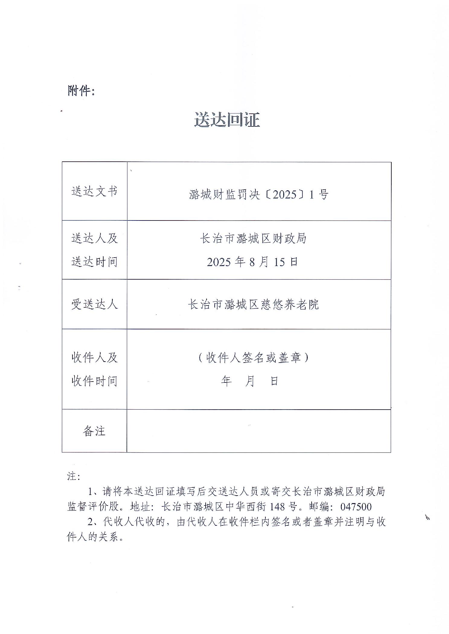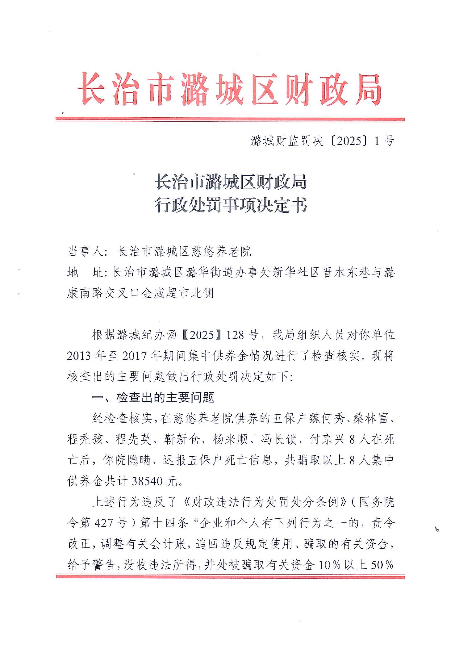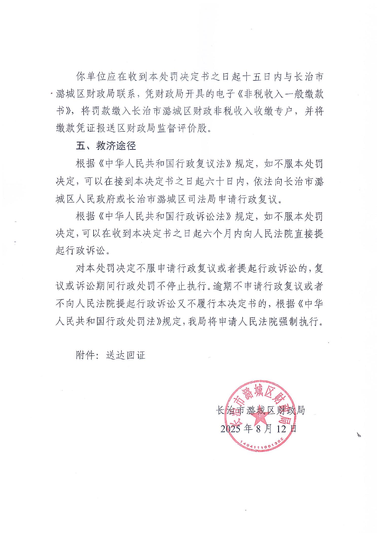 长治市潞城区财政局行政处罚事项决定书