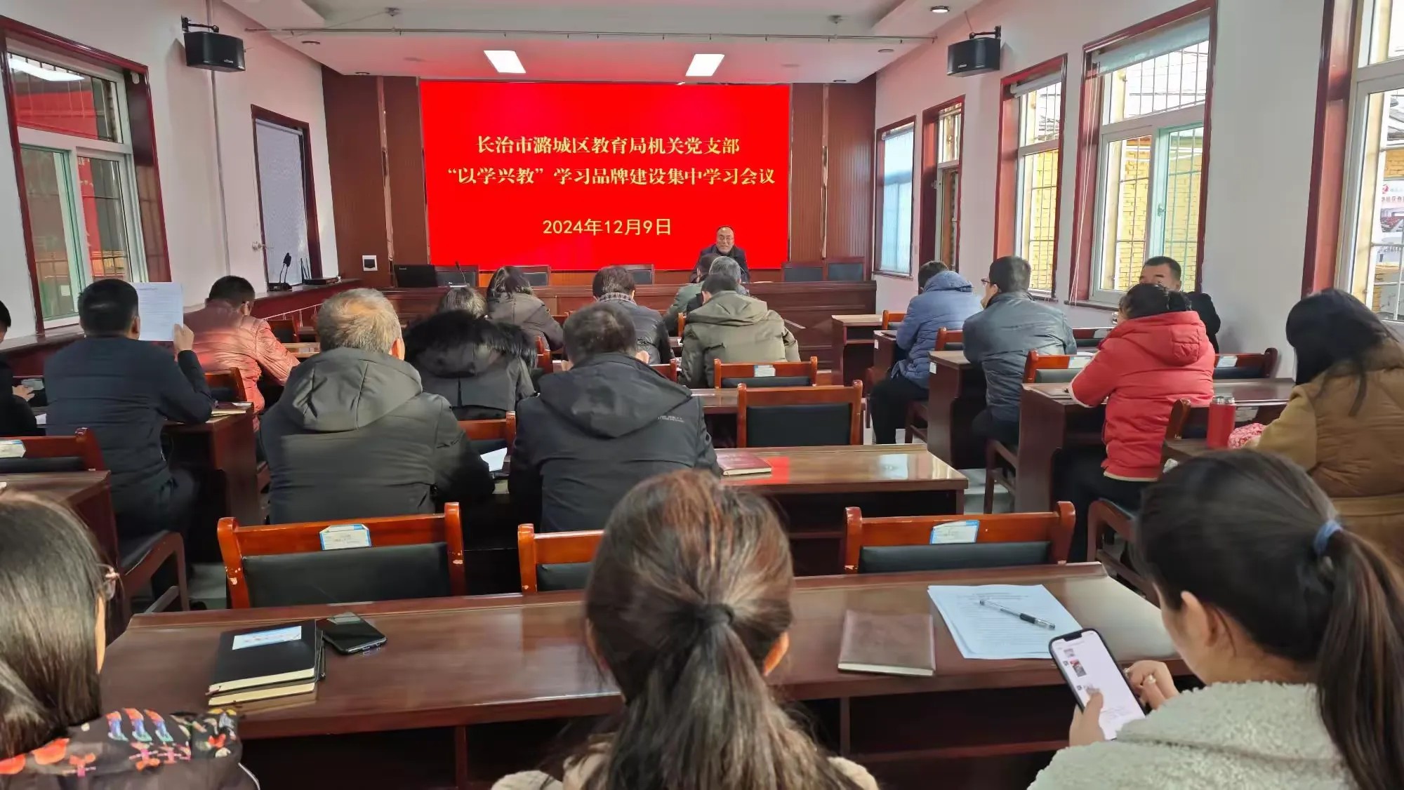 12月9日下午,区教育局机关党支部在机关大会议室召开“以学兴教”学习品牌建设集中学习会议。机关全体工作人员参加。