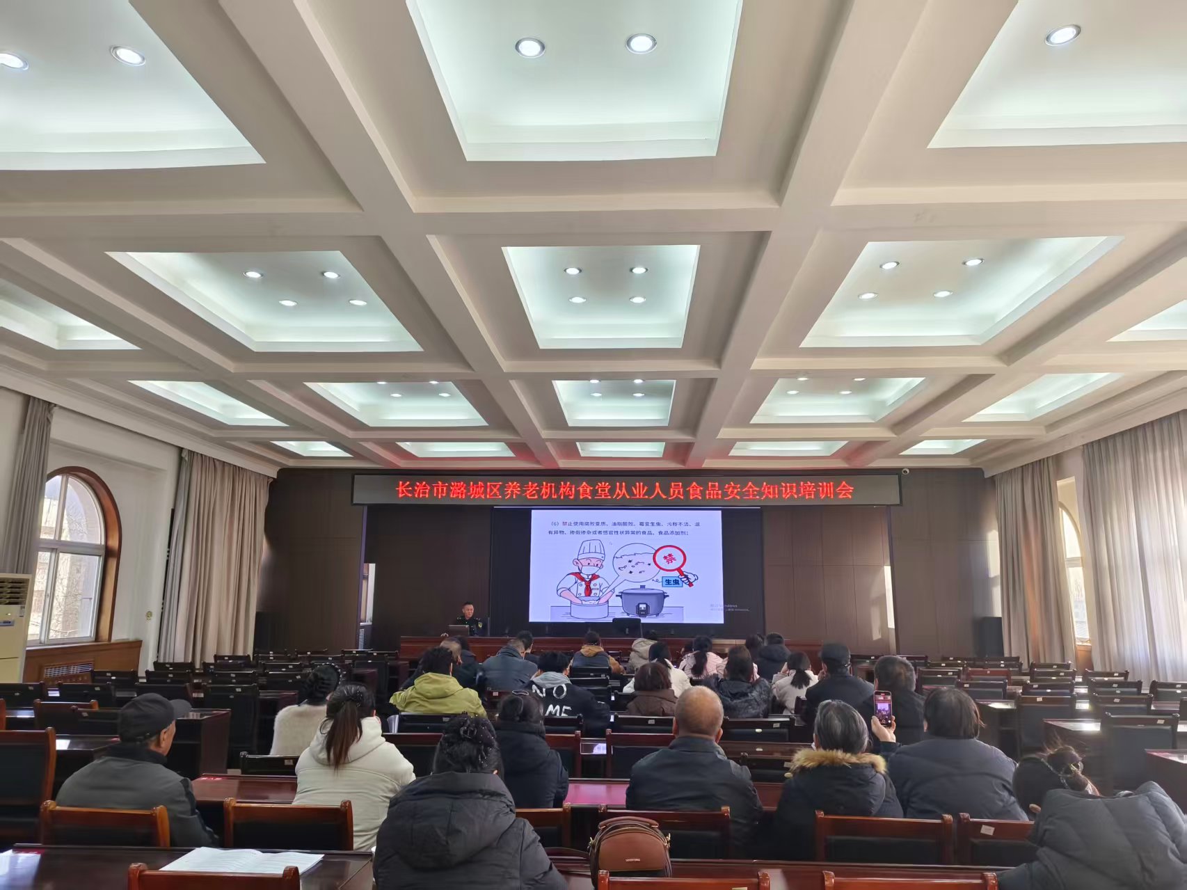 12月24日,为进一步强化全区养老服务机构食品安全管理,切实保障老年人饮食安全。长治市潞城区市场监督管理局组织召开了长治市潞城区养老机构食堂从业人员食品安全知识培训会。全区各养老机构、社区日间照料中心及相关幸福工程的食品安全管理人员与从业人员参加了本次会议。