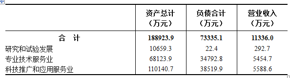 2023年末,科学研究和技术服务业企业法人单位资产总计188923.9万元,负债合计73335.1万元。