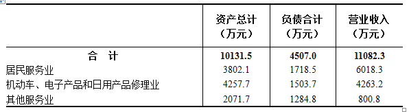 2023年末,居民服务、修理和其他服务业企业法人单位资产总计10131.5万元,比2018年末增长186.1%;负债合计4507.0万元,比2018年末增长157.7%。全年实现营业收入11082.3万元(详见表5-6)。