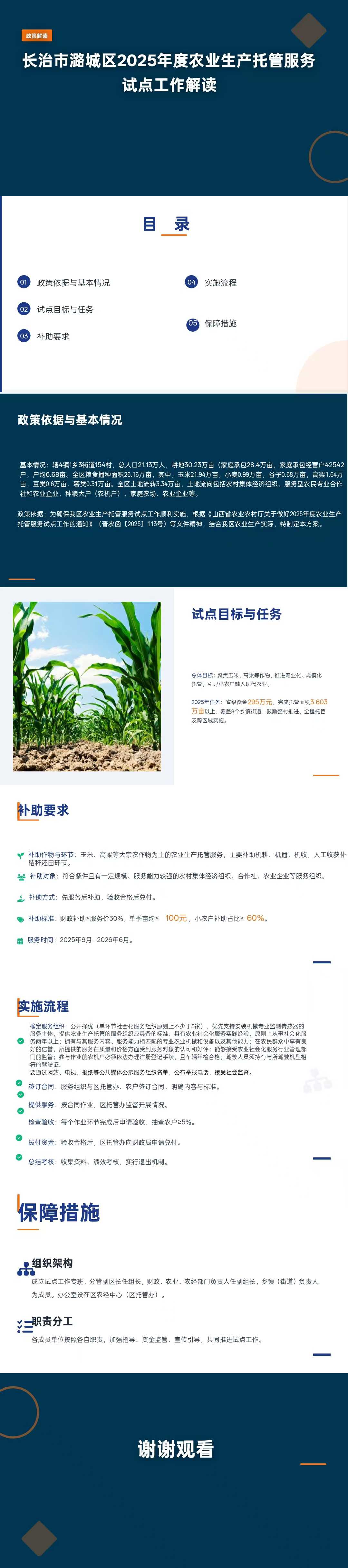 原文链接:长治市潞城区人民政府办公室关于印发长治市潞城区2025年度农业生产托管服务试点工作组织实施方案的通知