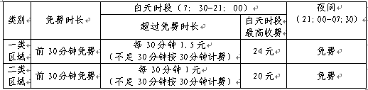 5.白天时段(07:30-21:00)实行计时收费,采用半小时计费制,以半小时为计费单位,不足半小时按半小时计费,连续累计计时收费。