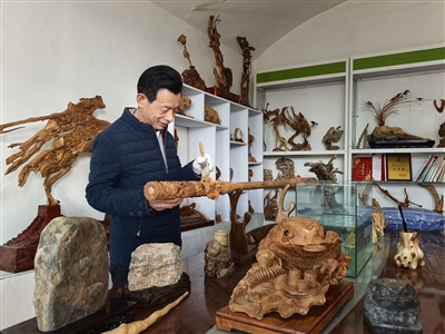 刀锋千百转,枯木再逢春。苗魁宁用自己的双手,传承着先辈们的智慧与技艺,让古老的根雕艺术在现代社会中找到了新的生命力,而他的作品也为乙巳蛇年增添了浓厚的文化色彩,让根雕这一非遗技艺在新时代绽放出别样光彩。“根雕艺术是对传统文化的传承,我希望通过自己的作品,让更多的人了解和喜爱根雕艺术,感受到传统文化的魅力。今年我也试着做两个崖柏枕头,它的香气能起到缓解精神、促进睡眠的效果。我准备2025年把闲余的边角料、上等的粉末做成枕头,创新产品,融入新的元素,让根雕在新的一年焕发生机。”苗魁宁充满信心。