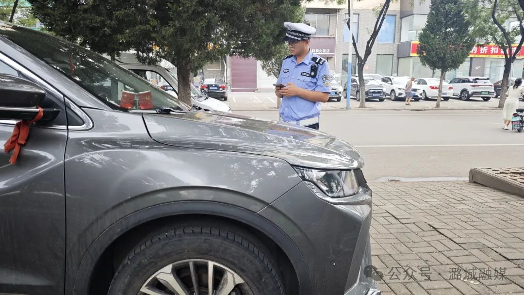 区公安分局交警大队工作人员对乱停乱放车辆进行劝导