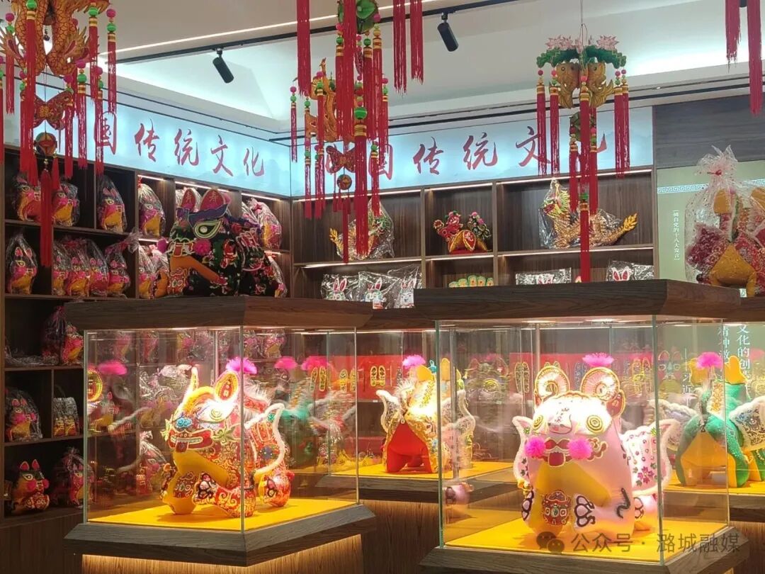 步入工坊展厅,琳琅满目的布艺手工制品令人目不暇接:成排的“潞王虎”摆件,红金丝线交织的纹样搭配粉色绒球点缀的眉眼,威严中又透着几分可爱;还有不少布老虎端坐展柜,头冠的卷云纹在亮片映衬下熠熠生辉;一旁的挂件更是别具巧思,迷你布虎搭配烫金姓氏牌,流苏轻轻摇曳,传递着浓浓的传统韵味。每一件作品都凝聚着女工们的心血,也见证着非遗技艺在新时代的鲜活生命力。